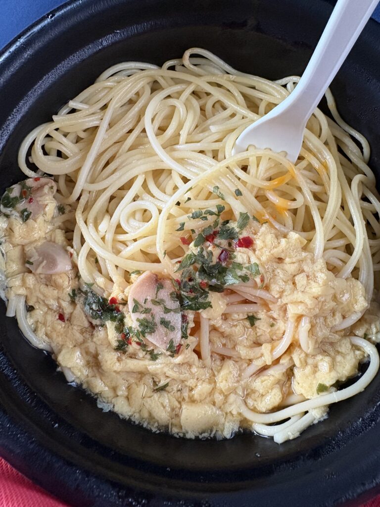 ぺぺたまとはペペロンチーノに卵を合わせたメニューで、吉本芸人の華丸大吉さんもよくテレビで紹介されている超名物パスタ